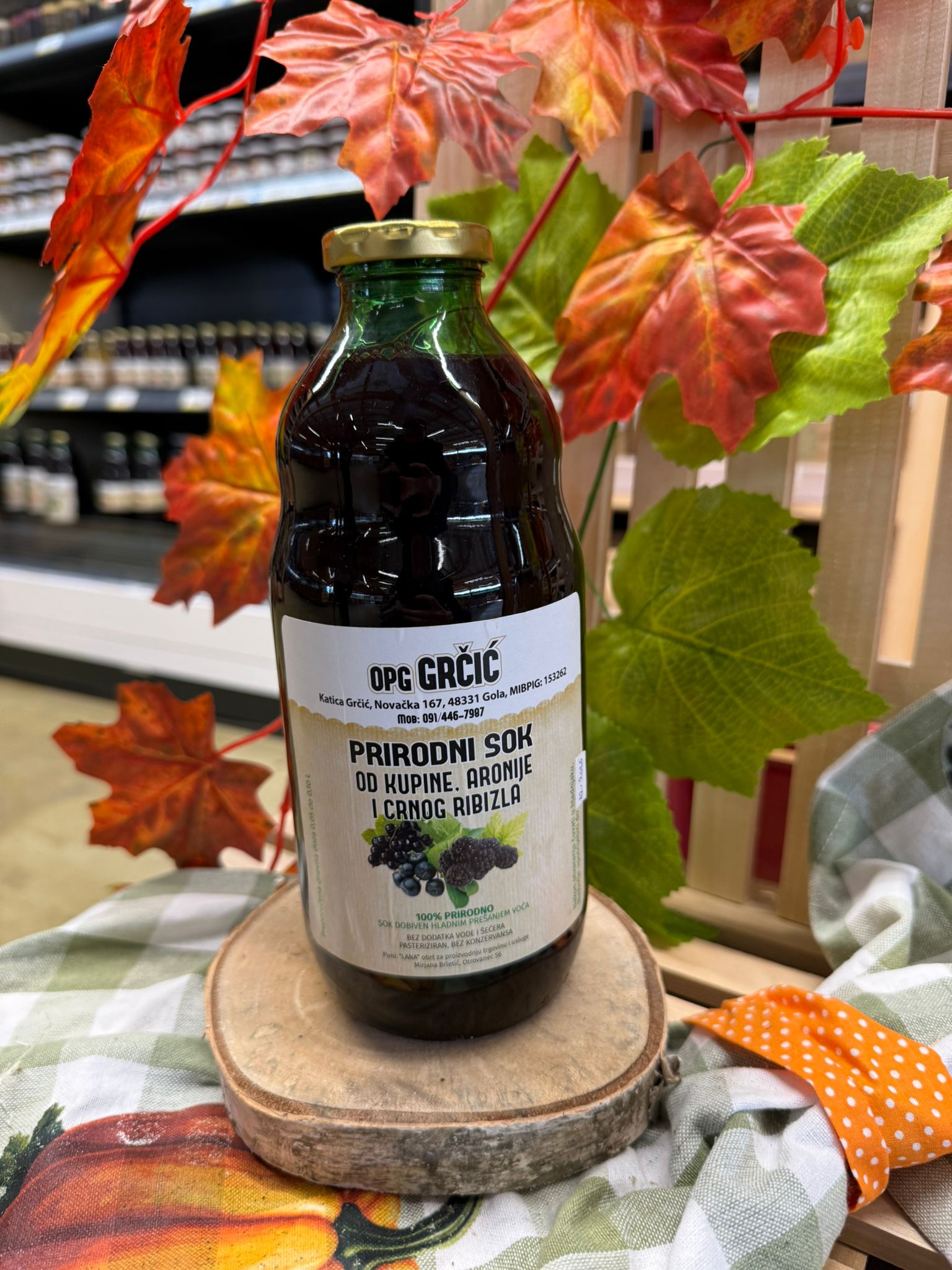 Prirodni sok Mix 1 L OPG Grčić kombinira tri aromatične voćne vrste – kupinu, aroniju i crni ribizl – u skladnu i osvježavajuću voćnu mješavinu. Odlikuje ga duboka tamna boja te bogat, blago kiselkast i prirodno voćan okus.