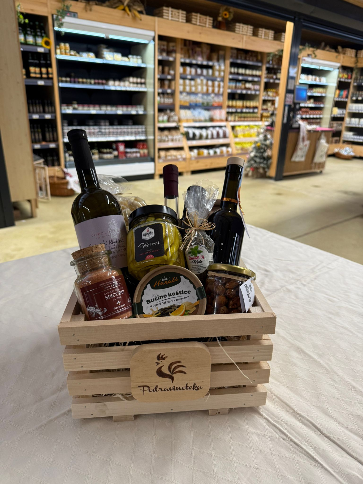 Čvrsta konstrukcija osigurava stabilnost i dugotrajnu upotrebu, a dekorativni izgled daje rustikalan i prirodan šarm. Savršena je za gurmanske poklon pakete, blagdanske ponude ili promotivne setove.